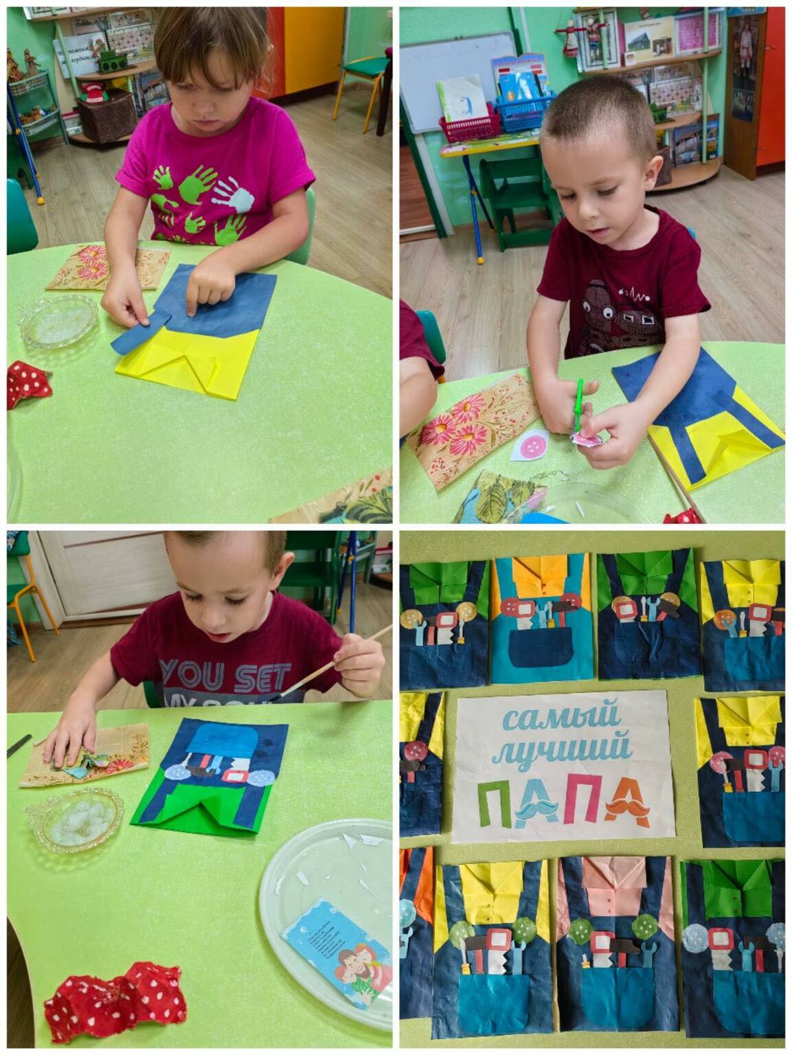 Наш детский сад не остался в стороне от этого события. В рамках празднования Дня отца в группах прошли мероприятия, и поздравления, посвящённые празднику, были проведены: физкультурный досуг «папы-строители», «Такие разные папы», «Заниматься спортом, как папа», развлечение в старшей группе «Папин магазин», дидактическая игра «Картинку собери и про папу расскажи», аппликация «Подарок для самого лучшего папы», художественно-эстетическая деятельность «Открытка папе» и многое другое.